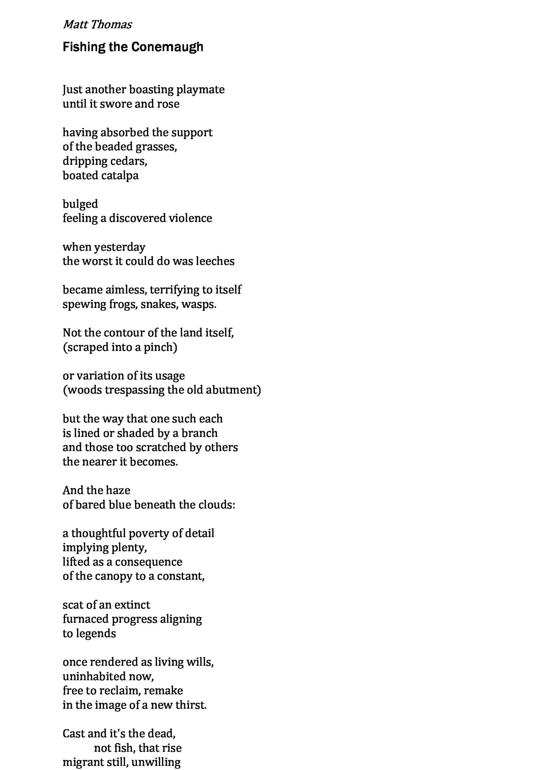 Matt Thomas is a smallholder farmer and occasional community college teacher. His work has appeared recently in Killing the Buddha and the Hampden-Sydney Review and is upcoming in Cleaver Magazine. He lives with his partner and their daughter in the Blue Ridge Mountains of Virginia.